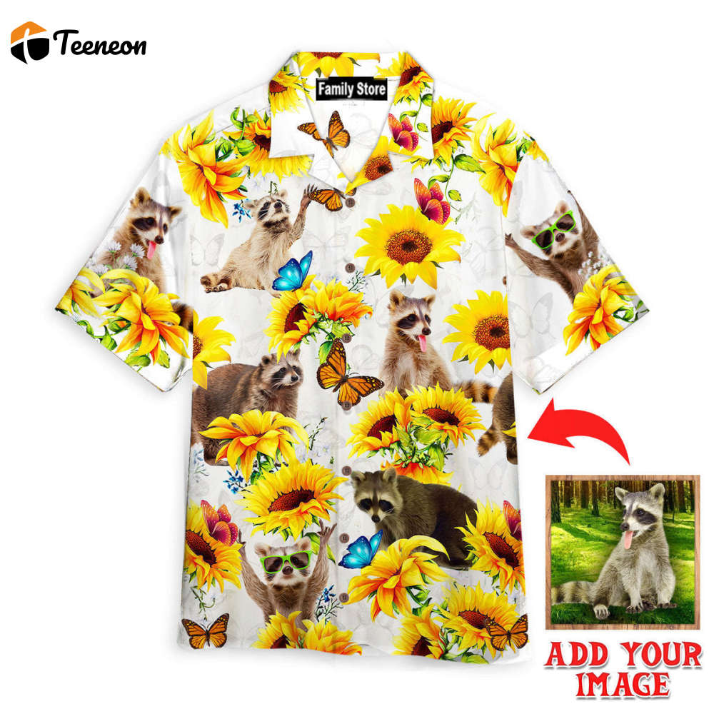 Custom Photo Raccoon Lovers SunFlower Custom Hawaiian Shirt