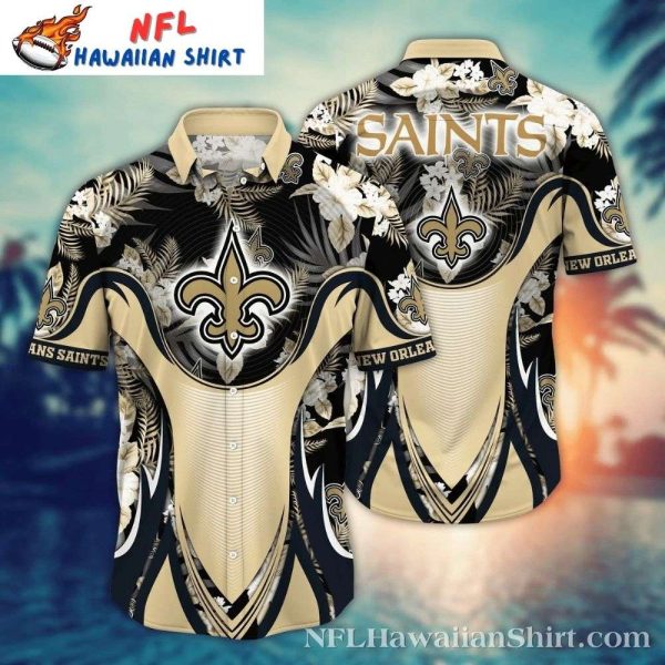 Golden Florals And New Orleans Saints Crest Hawaiian Shirt