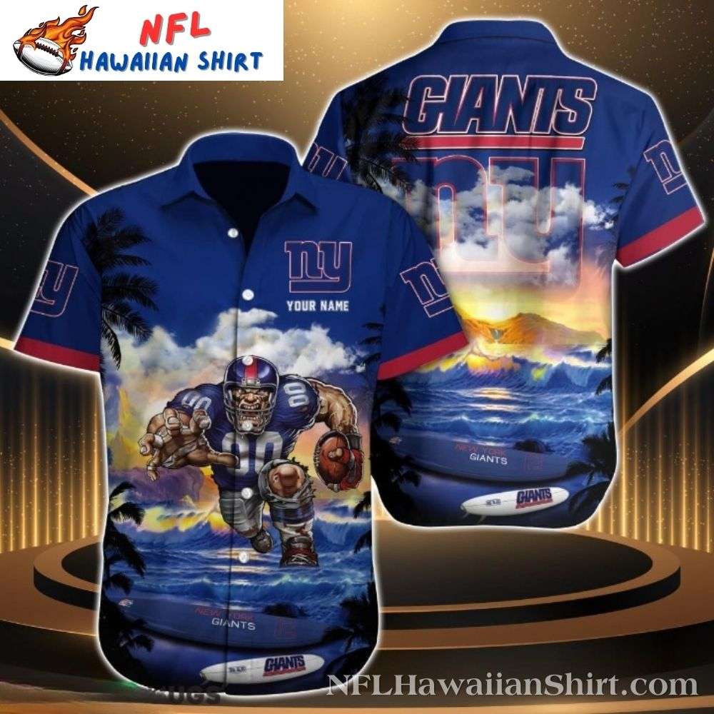 NY Giants Sunrise And Football Player Custom Name Hawaiian Shirt