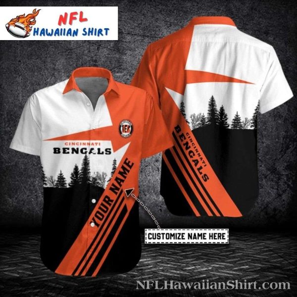Pine And Stripes – Custom Name Cincinnati Bengals Aloha Shirt With Nature-Inspired Backdrop