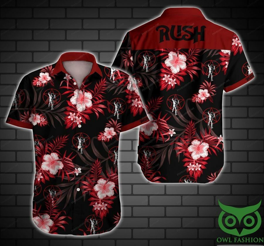 Rush Music Band Floral Black And Red Hawaiian Shirt