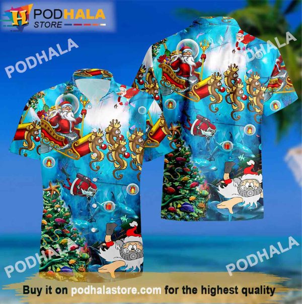 Scuba Diving Undersea Santa Hawaiian Shirt, Party Xmas Gifts