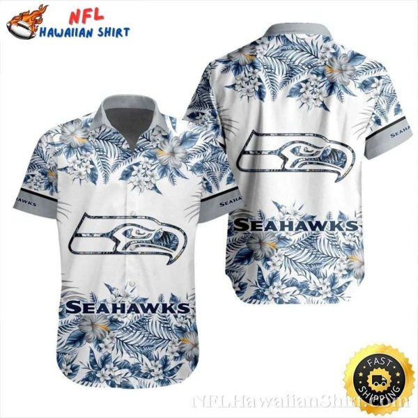 Seattle Seahawks Winter Floral Emblem White Aloha Shirt