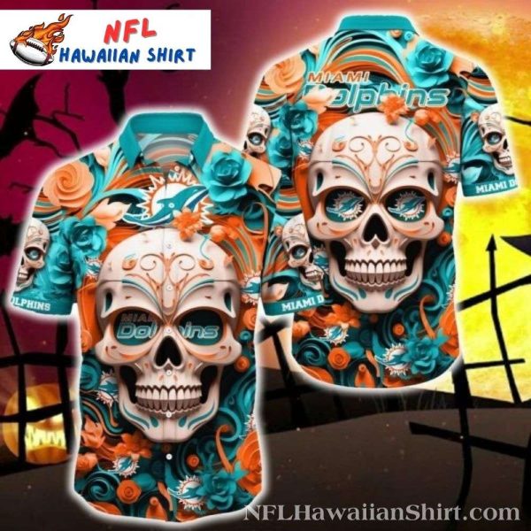 Skull Graphic Miami Dolphins Hawaiian Shirt – Edgy Team Style