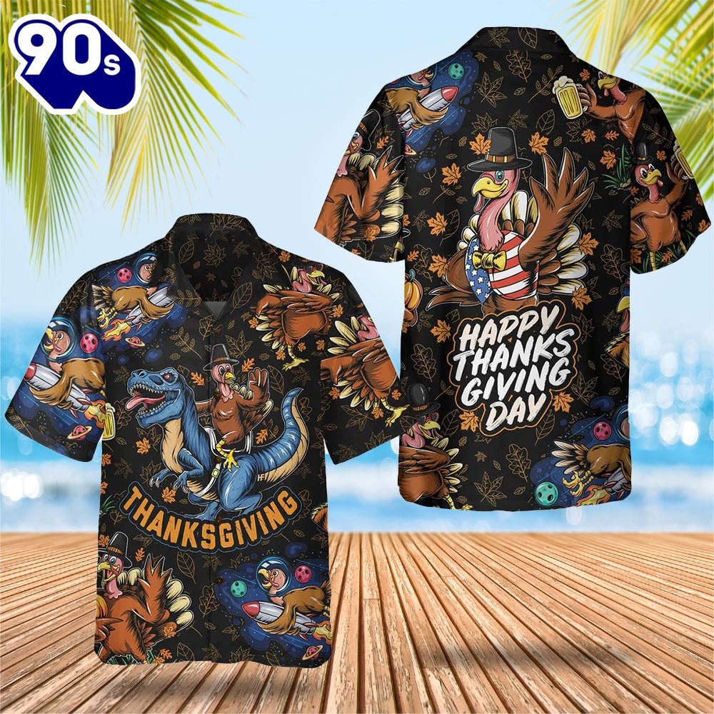 Turkey Riding Dinosaur Happy Thanksgiving Day Hawaiian Shirt Best Thanksgiving Clothing